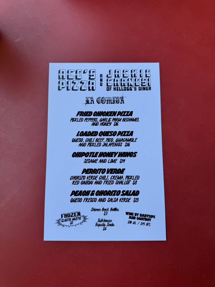Aces cheese blend, tomato sauce, burrata, Calabrian chili and fresh basil.